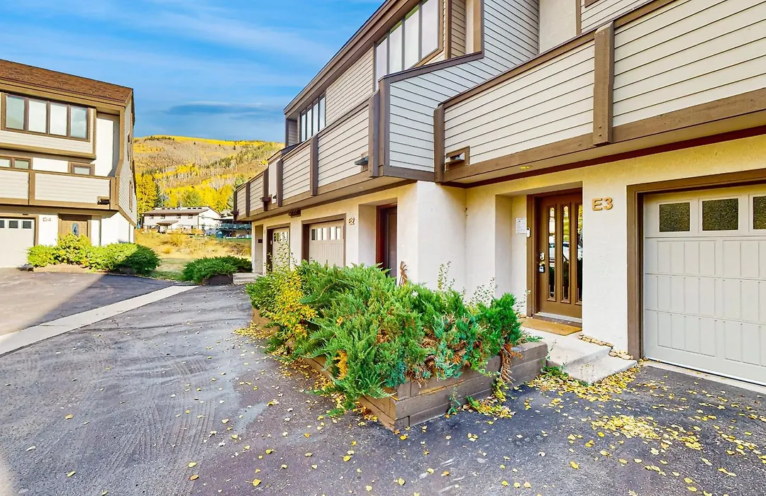 Die 3-Zimmer- Spruce Creekside liegt im Stadtviertel West Vail und verfügt über eine sonnige Terrasse mit Blick auf die Berge.